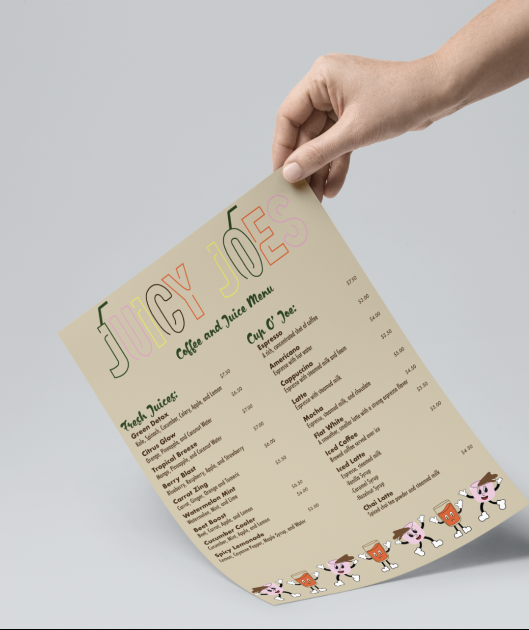 Juicy Joe’s is a vibrant coffee and juice truck designed for people on the go. The branding captures its energetic and refreshing vibe, with bold colors and playful typography that stand out on the streets. From the logo to the packaging, every detail reflects the perfect blend of freshness and convenience, making Juicy Joe’s a go-to spot for a quick caffeine fix or a healthy juice boost.